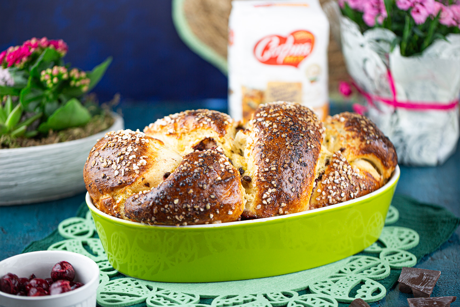 Козунак с два вида шоколад и череши