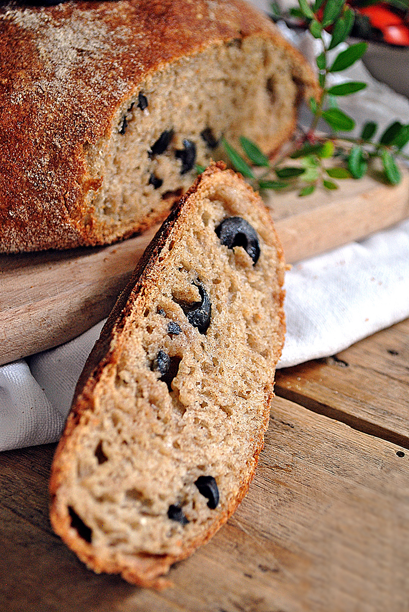 Шупнете маята в хладката вода заедно със захарта. След това, смесете с брашното. Прибавете солта и нарязаните маслини. Прибавете още вода или брашно, ако е необходимо за доомесване на меко, нелепнещо тесто. Оставете да втаса за около час или до удвояване на обема му.