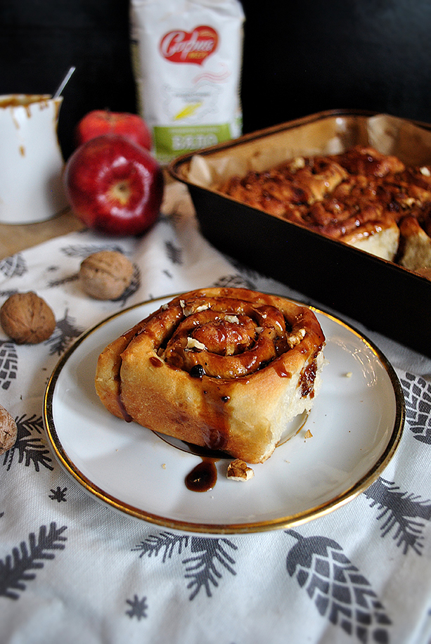 Друг разлика е и че американските канелени рулца са по-често с някакъв вид топинг / глазура – от айсинг или карамел. В днешната вариация е добавен и един от любимите плодове на американците – ябълката, правейки рулцето още по-ароматно и незабравимо. Опитайте!