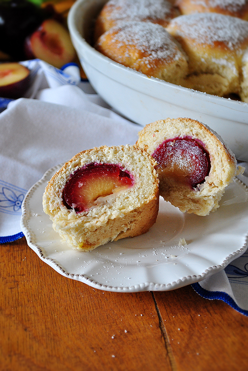 Печените бухти са традиционен десерт в цяла Бохемска област. Вариация на този десерт може да намерите в унгарската, словашката, словенска, хърватската, австрийската и чак до немската кухня. Поднасяни с ванилов крем като заливка или пълнеж, с плънка от мармалад от кайсии или смес от мак, печените бухти са един от най-традиционните десерти в тези страни. В Бавария ги приготвят с цял плод от слива като пълнеж и така ще ви го представя и аз днес. А ето и как се правят: