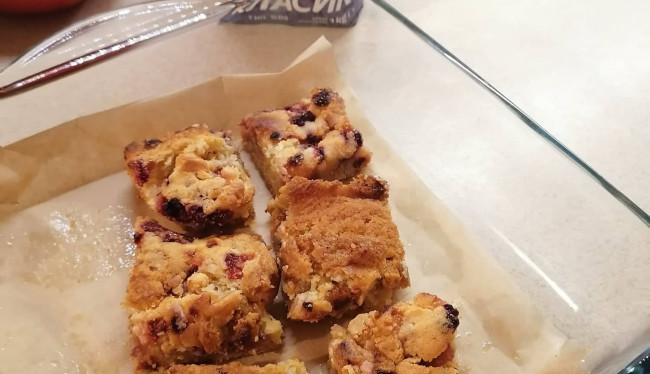 Чийзкейк блонди с бял шоколад, ягоди и малини