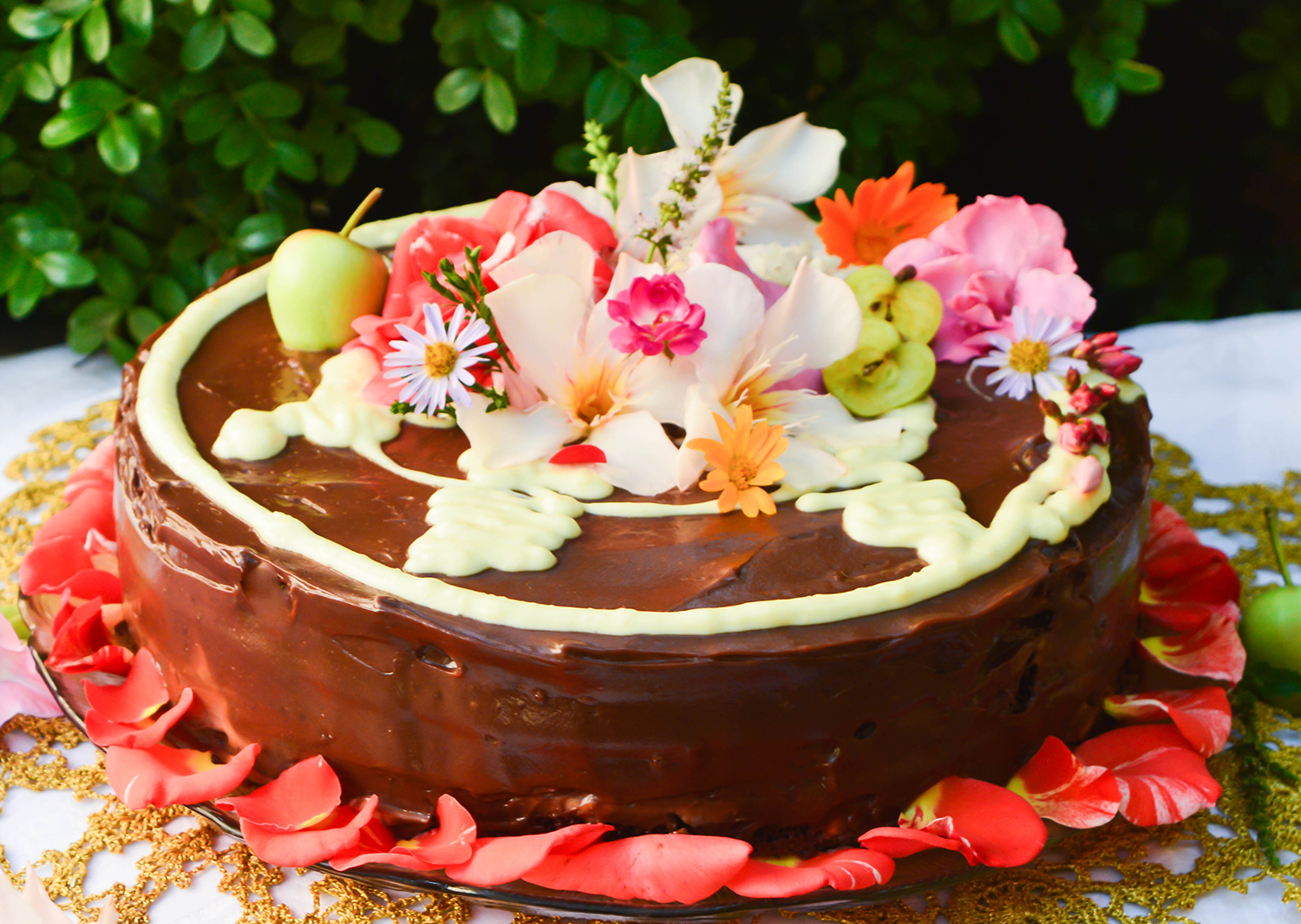 Домашна торта с цветя и плодове