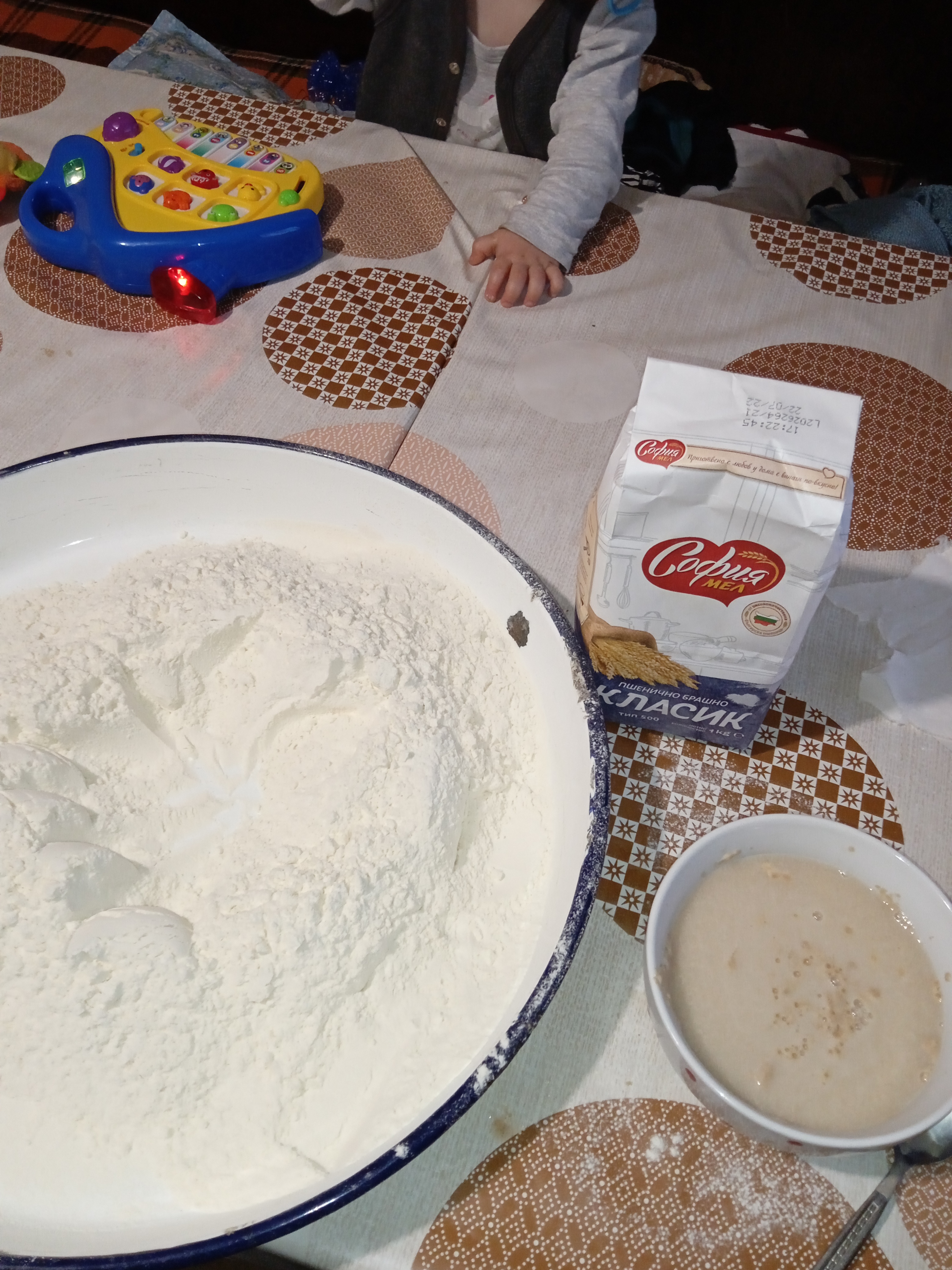 4. Омесих тесто, което оставих на топло място за 20 минути, за да втаса.