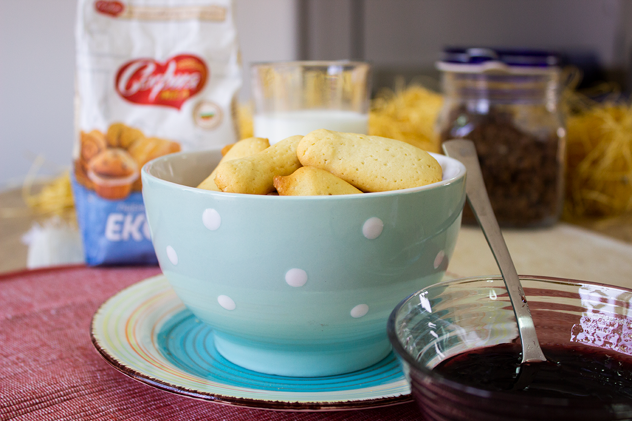 Бисквитките се пекат в предварително загрята на 180 градуса фурна. Готови са, когато краищата им порозовеят.