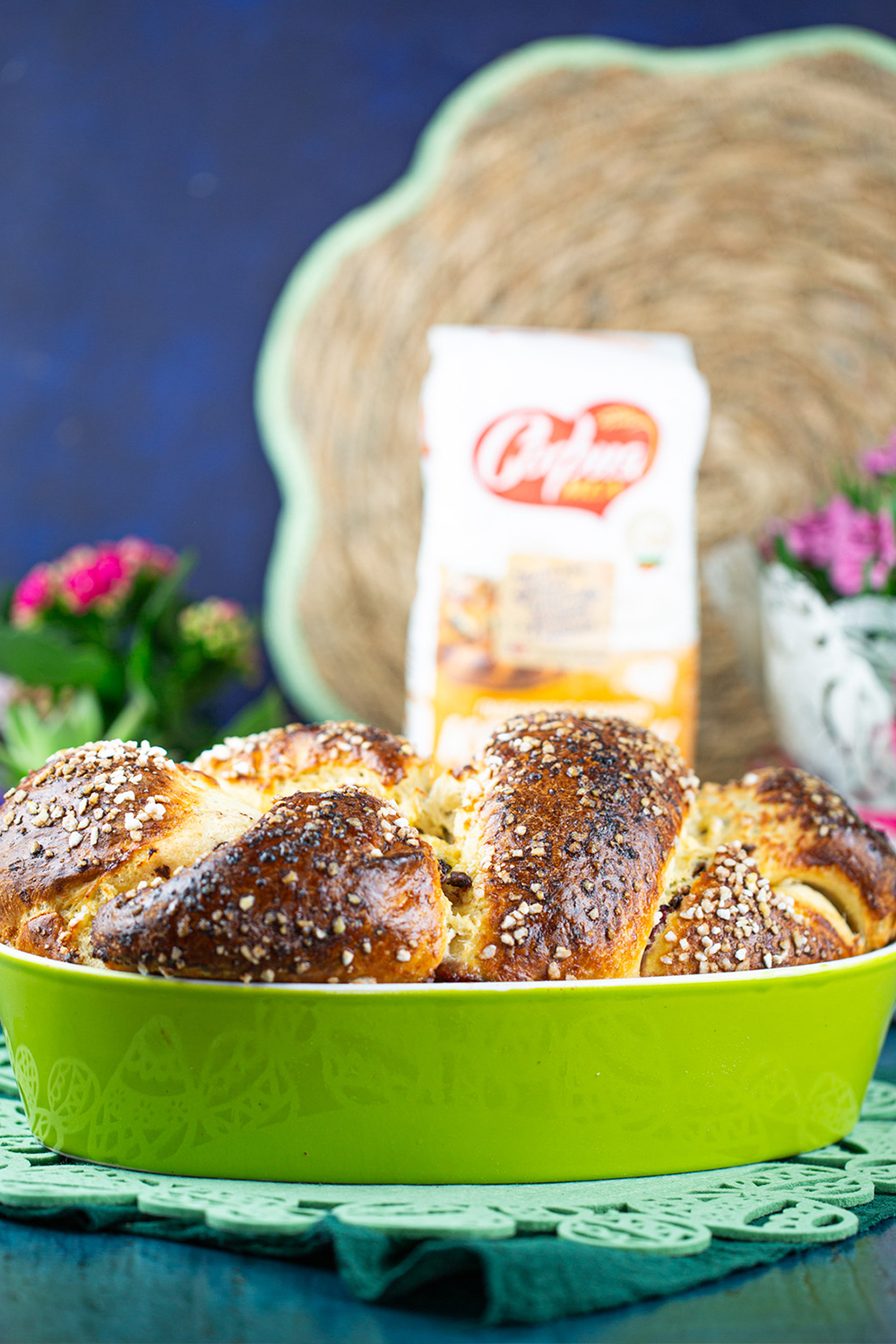 7. Печете с любов в предварително загрята фурна на 180°С за 60-70 минути. Покрийте козунака с хартия за печене, за да не загаря.