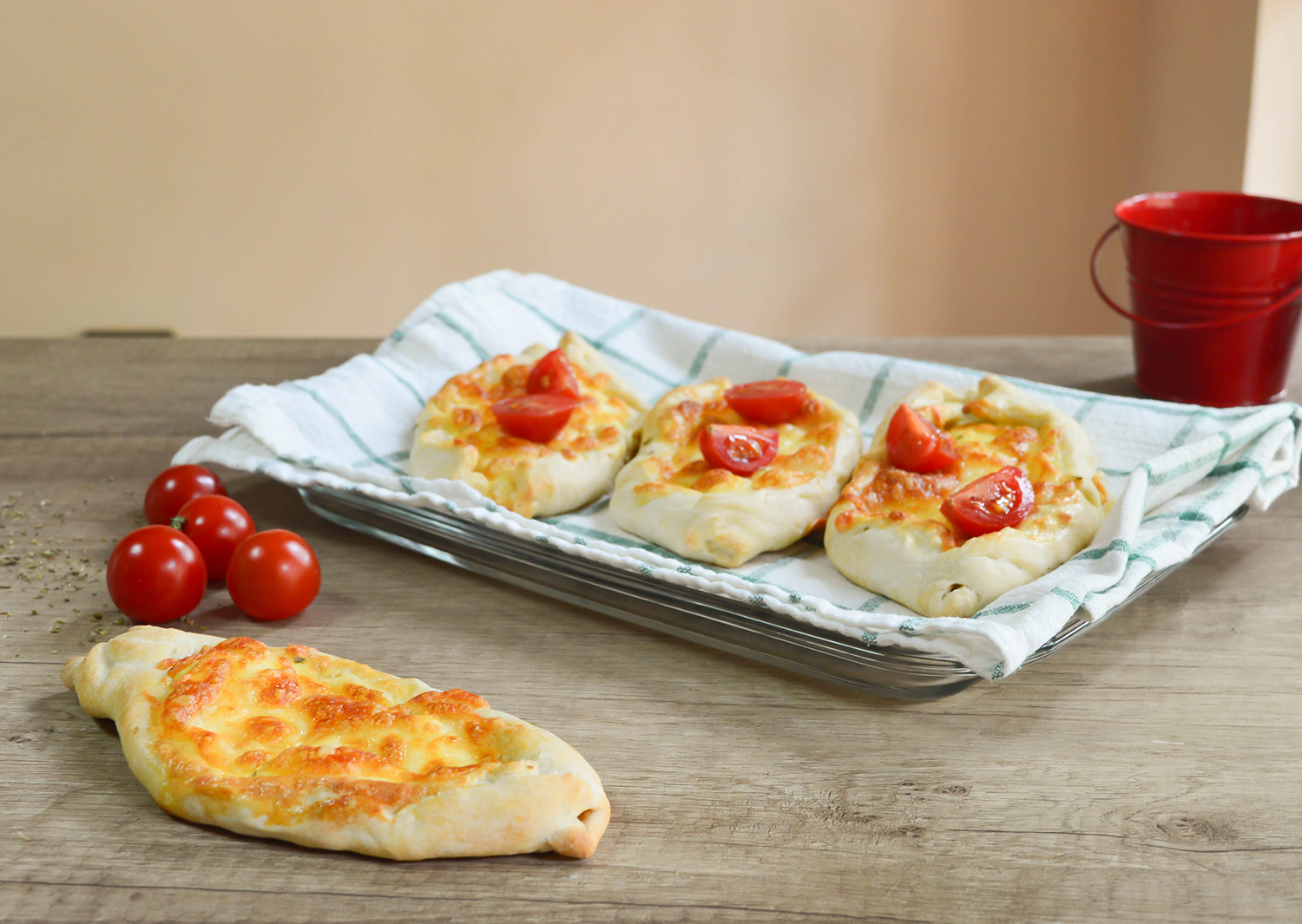 Яйцата и натрошеното сирене се смесват. Тестените лодки се намазват с мазнина и в средата се слага от яйчената смес. Отгоре се поръсват леко с риган и се слагат в загрята на 180 градуса фурна за около 20 минути. Малко преди да са готови се поръсват с кашкавала и се връщат във фурната.