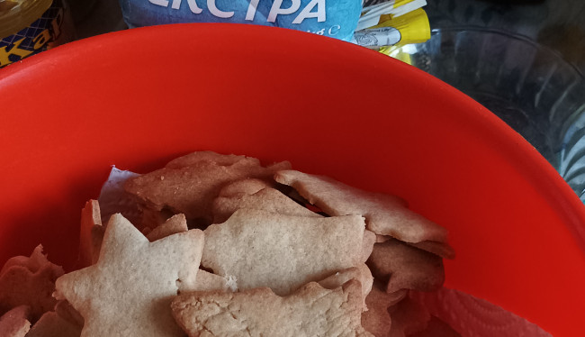 3. Разточете тестото на кора с дебелина около 0,5 см и използвайте формичките, които си имате вкъщи. За да се получат камбанките, елхичките, ангелчетата и цялата компания е необходни тестото да не е разточено много тънко, защото в противен случай няма да можете да ги отделите от работния плот.